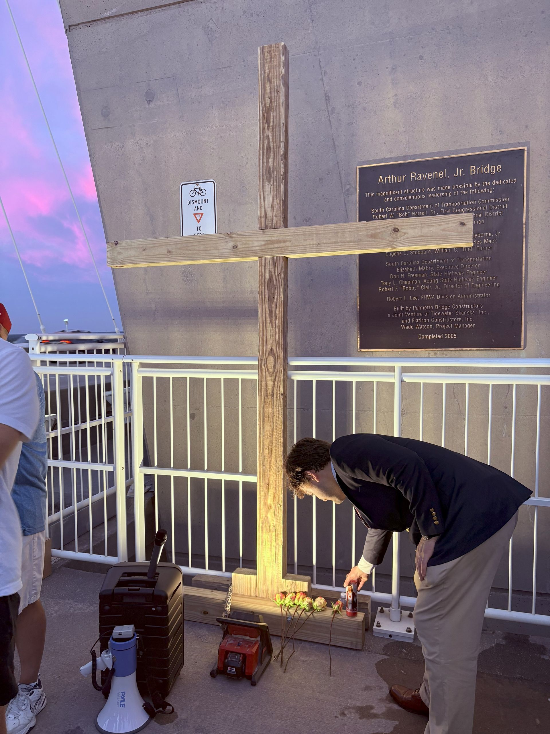 On Sunday evening, close to 1,000 people walked to the top of the Ravenel Bridge to honor Charlie Kirk. Pastor Joe Warring led us in prayer, bagpipes played "Amazing Grace," and we held a moment of silence.